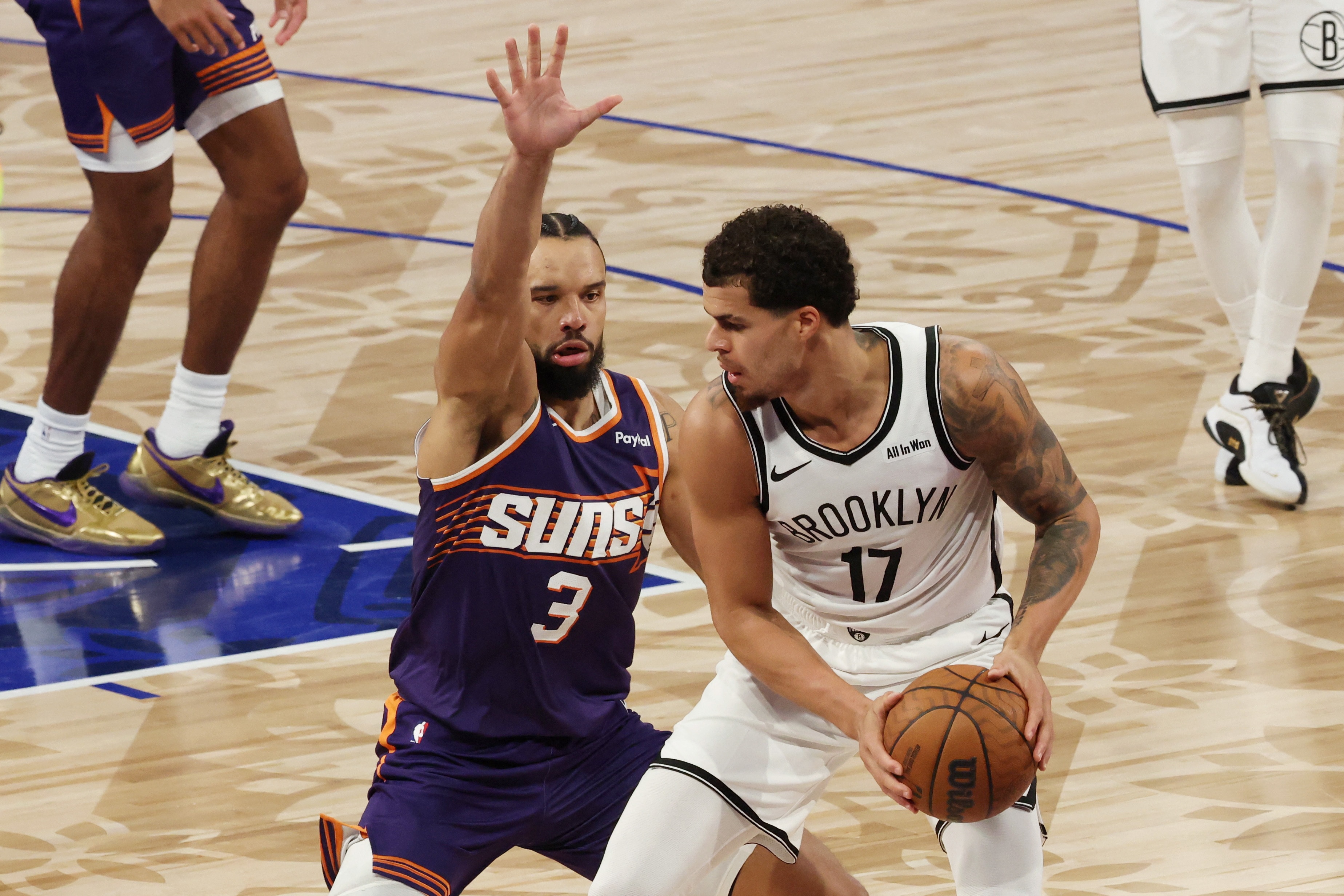 籃球球員小邁克爾-波特依舊保持射手水準(zhǔn),進(jìn)攻端命中率十分穩(wěn)定,比賽中也有標(biāo)志性的干拔三分。